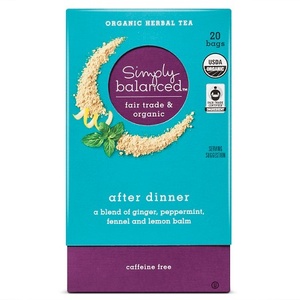 Fair Trade Orange Spice Herbal Tea. But those two Target brands will be phased out over time as Good Gather is rolled out. 3 Simply Balanced Organic Mint Green tea bags.